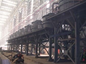 磚砌永久襯使用壽命短,工人勞動(dòng)強(qiáng)度大,成本高。隨不定形耐火澆注料技術(shù)進(jìn)步,中間包永久襯逐漸由磚砌發(fā)展到可塑料、搗打料搗打施工和耐火澆注料澆灌施工,目前普遍采用水玻璃結(jié)合鋁鎂澆注料、低水泥高鋁澆注料、無水泥高鋁尖晶石澆注料以及自流澆注料等材料砌筑。中、小型中間包永久襯厚度一般在10~12公分左右,大型中間包永久襯厚度在15~20公分左右。一般使用自流澆注料來澆注永久層,其流動(dòng)性好,不需振動(dòng)或輕微振動(dòng)即可施工,特別適用于薄壁部位施工。